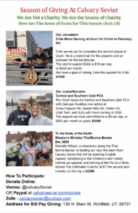 UPCOMING EVENTS WITH CALVARY SEVIER VALLEY: